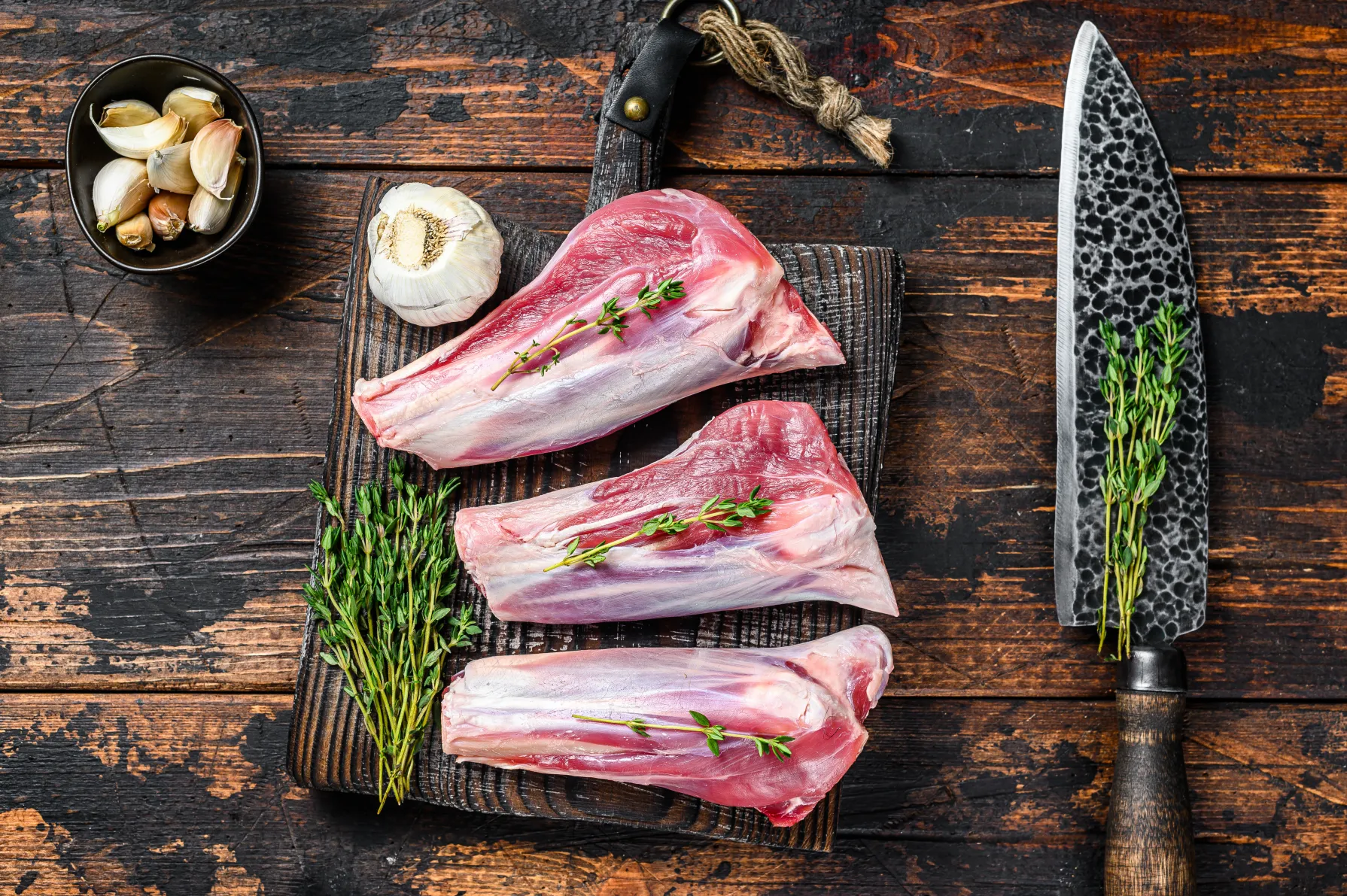 Nossos cordeiros criados em pastagens selecionadas desenvolvem stincos com a proporção ideal entre carne magra e tecido conectivo, garantindo o resultado perfeito nos preparos tradicionais. O osso central, com sua medula rica, contribui significativamente para o sabor final do prato, liberando nutrientes e aromas que enriquecem todo o cozimento.